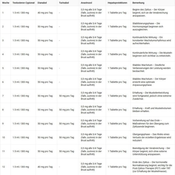 This cycle is ideal for beginners or intermediate users looking to increase lean muscle mass and improve strength. The combination of Testosterone Cypionate, Dianabol, and Turinabol ensures solid muscle gains, enhanced strength, and fast recovery. Side effects related to water retention are minimized thanks to this carefully chosen stack.