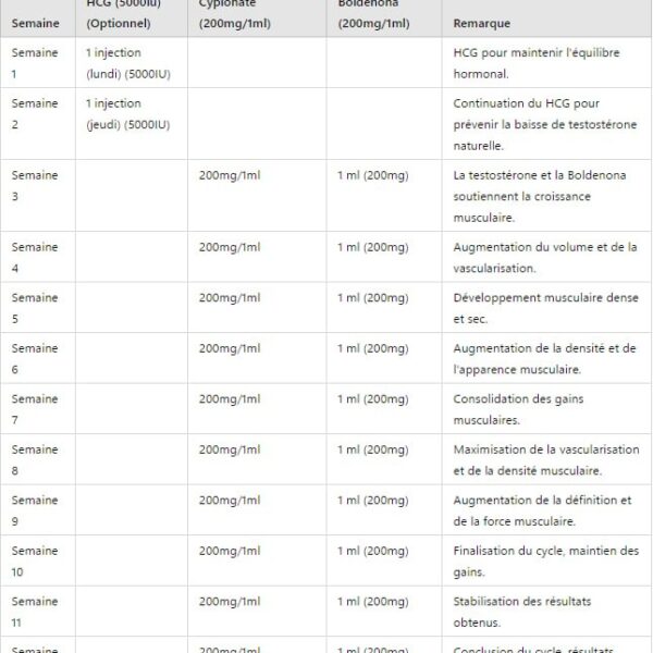 This cycle is ideal for intermediate or beginner users looking to achieve a dry and well-defined physique with minimal water retention. The combination of Testosterone Cypionate and Masteron Enanthate promotes lean muscle development, enhanced strength, and improved vascularity.